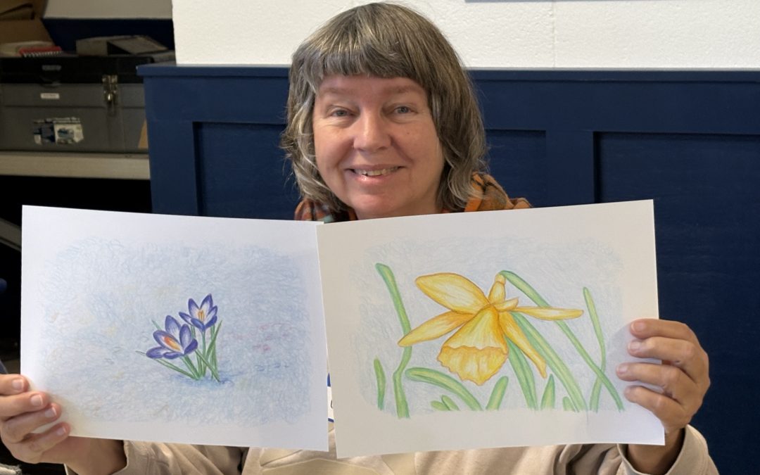 These works were created during the Crocuses Breaking Through the Snow workshop led by Paege Murphy. From beginners to experienced artists, each participant explored colored pencil techniques while bringing their own unique perspective and creative voice to this early spring subject.