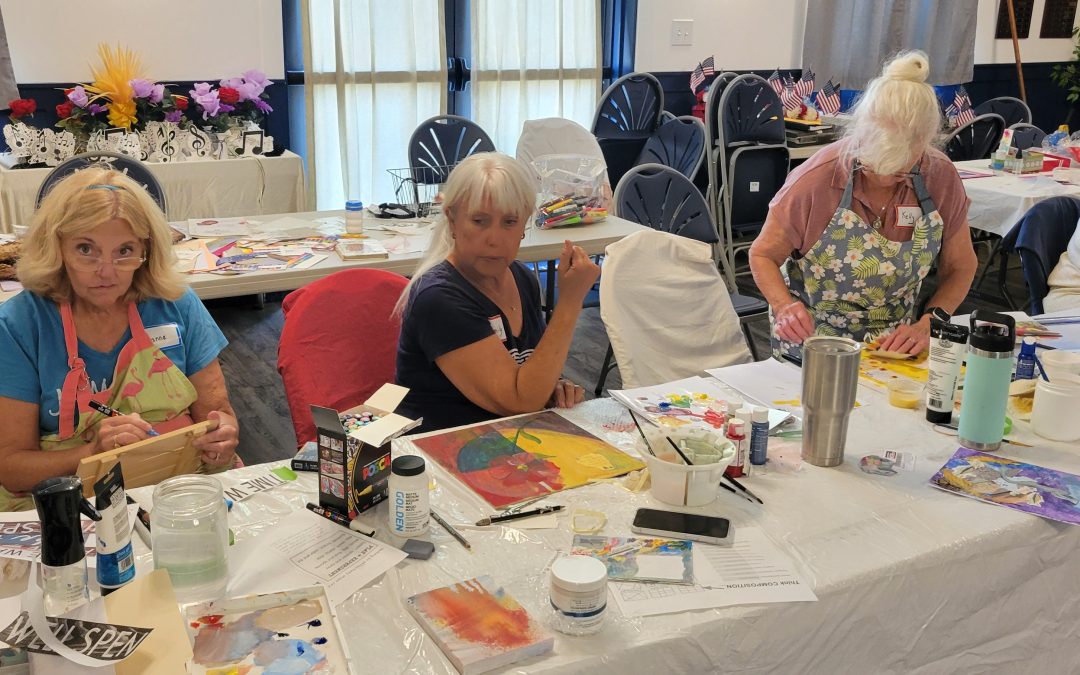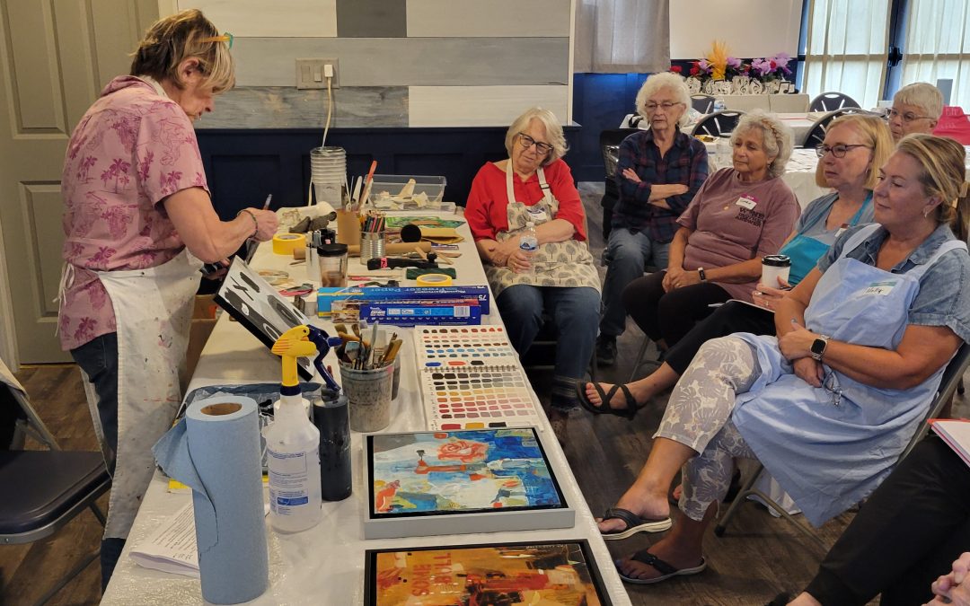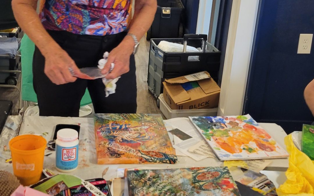 Instructor Debra Sue Solecki led a vibrant and inspiring Mixed Media Using an Intuitive Process workshop, guiding participants to explore mark making, layering, and spontaneous creativity. Artists of all levels enjoyed experimenting with a variety of materials while learning to trust their instincts and let the artwork evolve naturally. The day was filled with laughter, color, and creative freedom — leaving everyone energized and excited to keep creating long after the workshop ended!