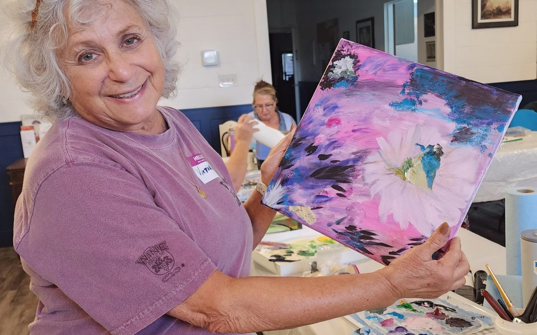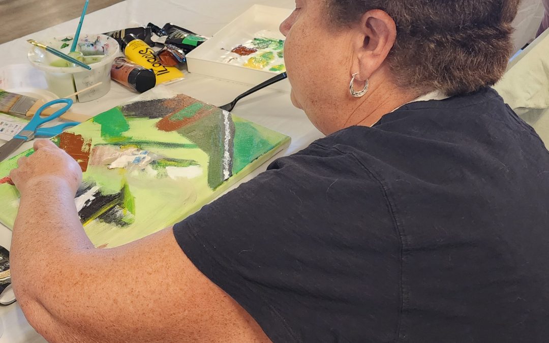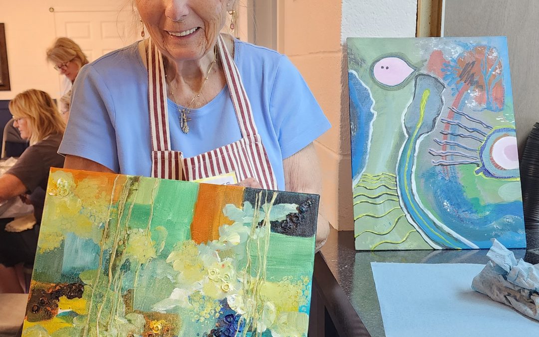 In Marsha Gray Carrington’s vibrant and expressive workshop, artists explored the world of acrylic abstracts through bold color, dynamic movement, and creative freedom. Participants learned how to loosen up their brushwork, experiment with layering, and trust their instincts while building powerful compositions. Marsha guided the group with warmth and encouragement, helping each artist discover their own unique voice within abstraction. One of the highlights was watching Marsha demonstrate how to transform spontaneous marks into striking works of art, showing just how limitless abstract painting can be. Students left inspired, energized, and ready to continue their artistic journeys with a fresh sense of confidence and creativity.