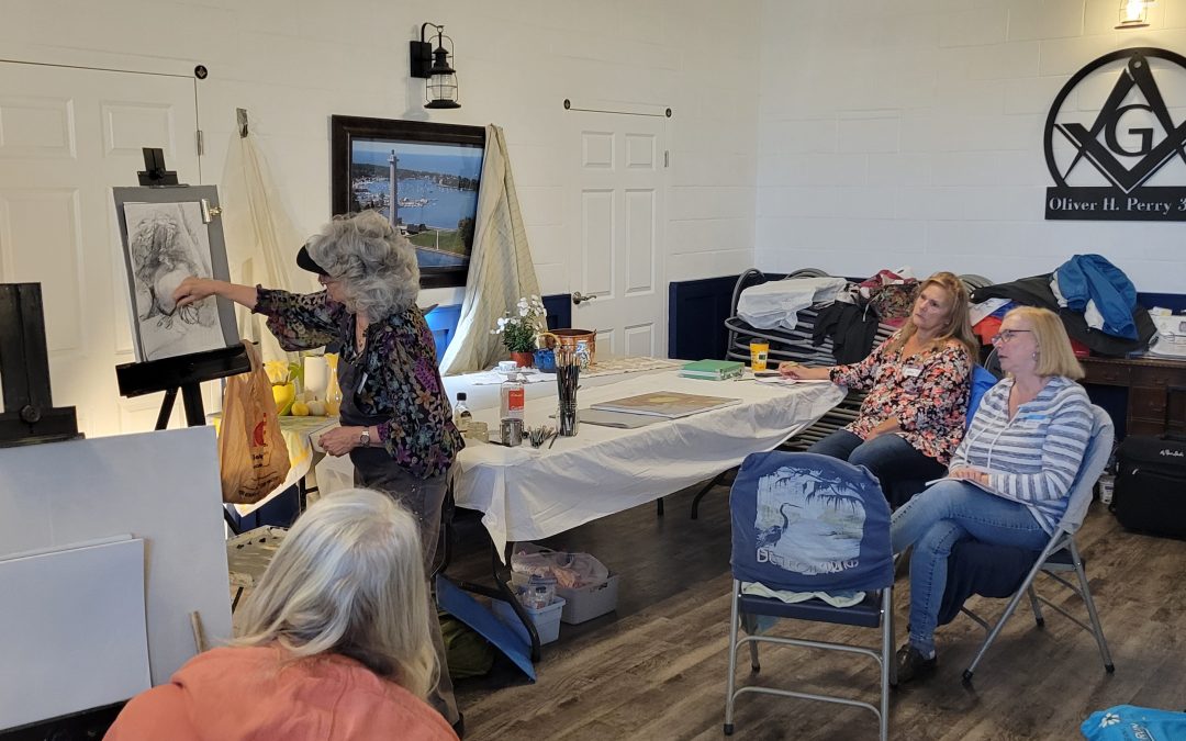 The 2025 Port Clinton Artists’ Club Workshops are held at the Masonic Lodge, located at 118 Monroe St. in Port Clinton, Ohio. The workshops are open to club members and the public. The following sessions are: